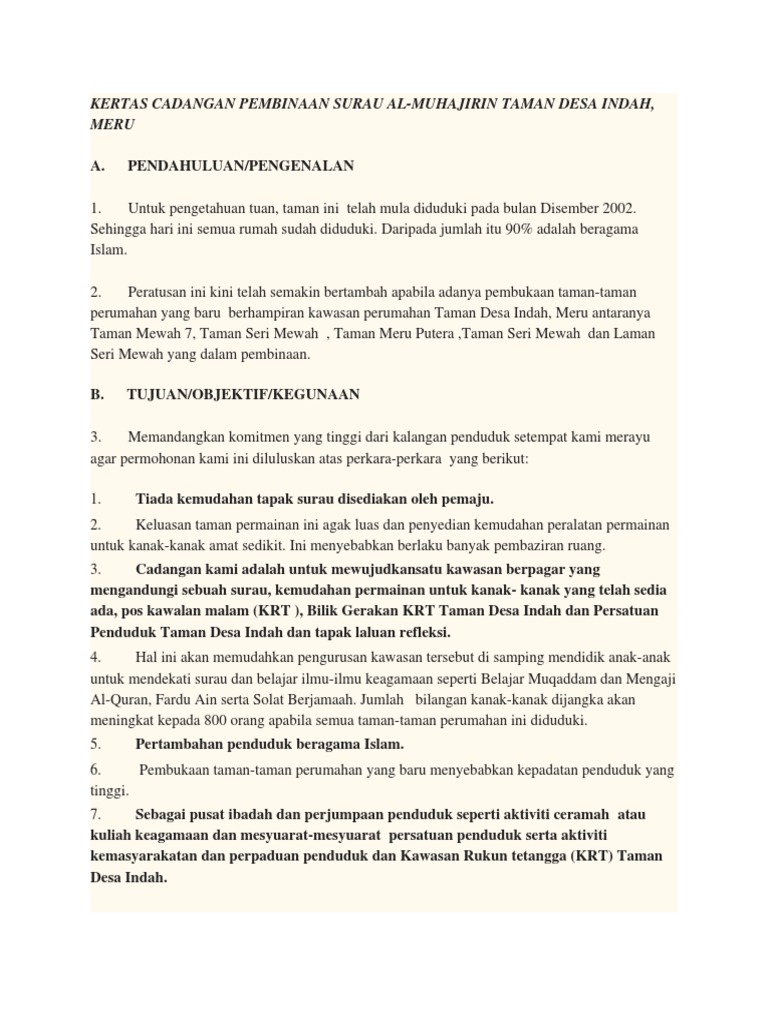 Kertas Cadangan Pembinaan Surau Al Pdf